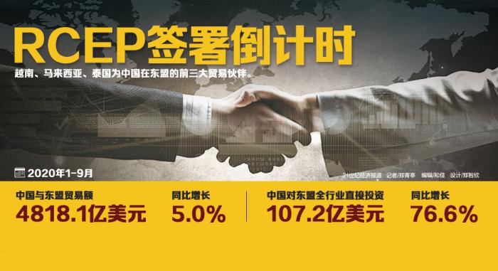 越南外交部副部长阮国勇9日在新闻发布会上宣布,RCEP谈判已经完成,目前各国正各自推进本国的批准程序。他补充道,15国有望在15日的第四次RCEP领导人会议上签署该协议。作为今年东盟的轮值主席国,越南将主持本次东亚合作领导人系列会议。