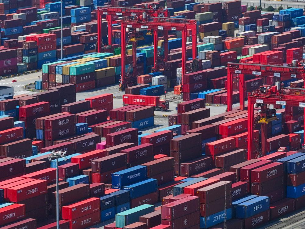 这是9月16日拍摄的江苏太仓港集装箱堆场(无人机照片)。新华社记者 郭洁宇 摄