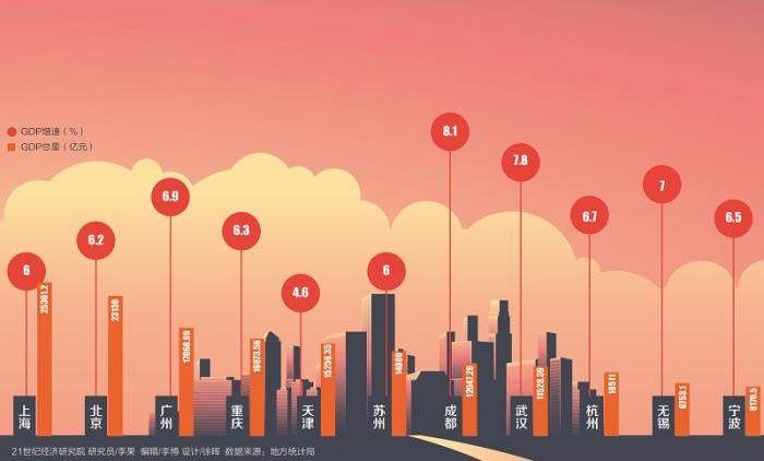 21世纪经济研究院认为,在年末“GDP万亿俱乐部”成员城市或达到17座的背景下,地方经济发展表现出如下特点。首先,这些城市的经济正在进行不同方式的转型升级,如杭州、重庆等地对于新兴制造业的重视,成都对于消费产业的大力扶持等;其次,面对部分城市的出口、固定资产投资下滑等问题,通过加强与“一带一路”沿线的合作,构建新型产业分工体系;最后,GDP万亿城市在减税降费、降低要素成本价格、改善营商环境、提高国际竞争力等方面的探索,或将给中国经济的转型升级带来更多的地方实践经验。