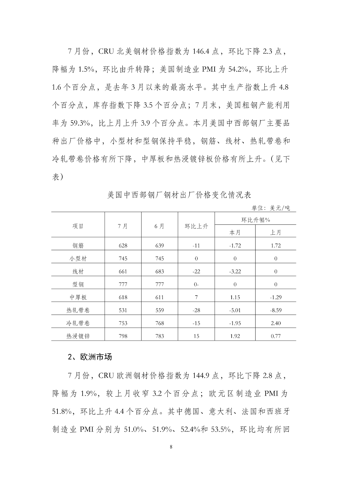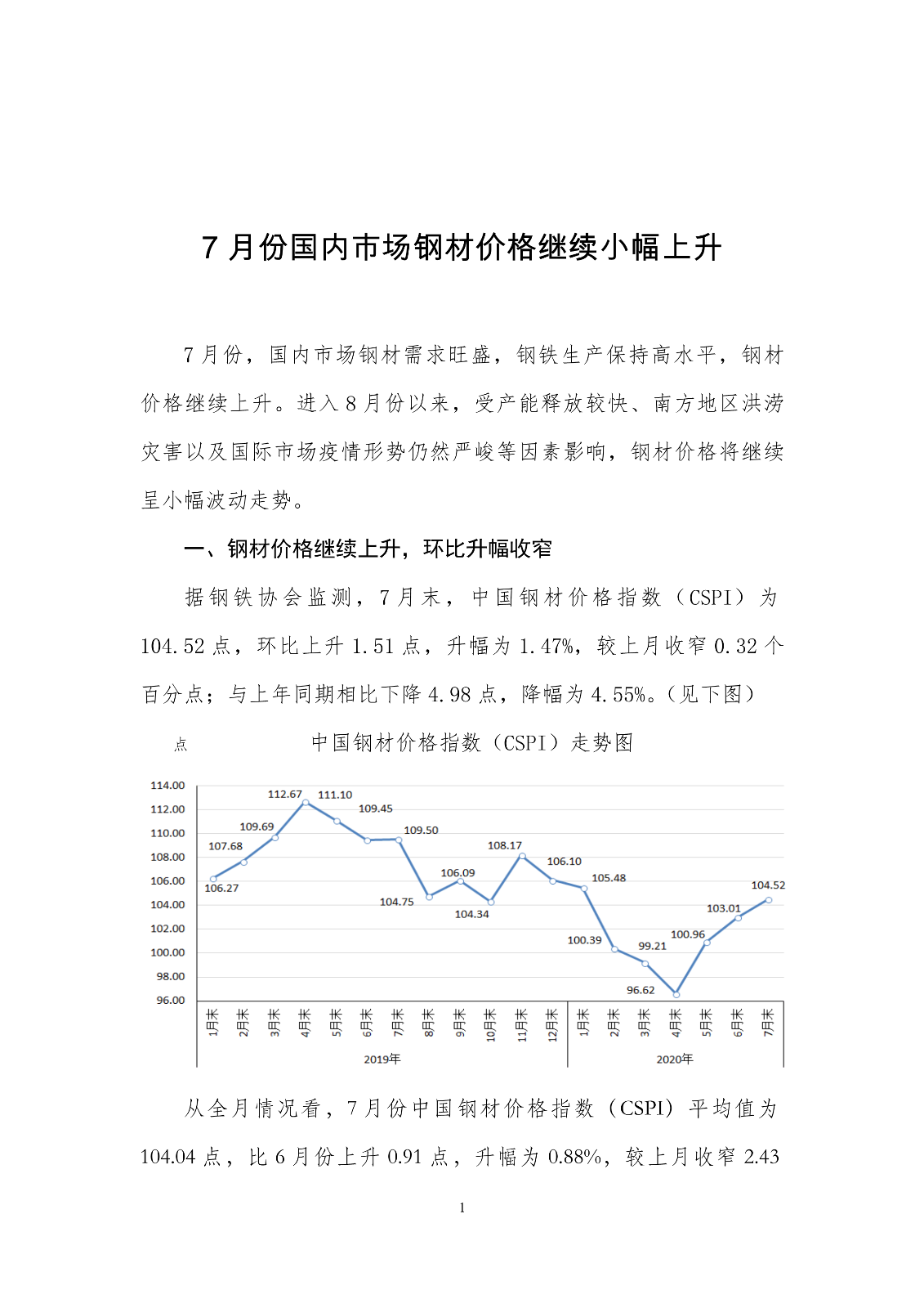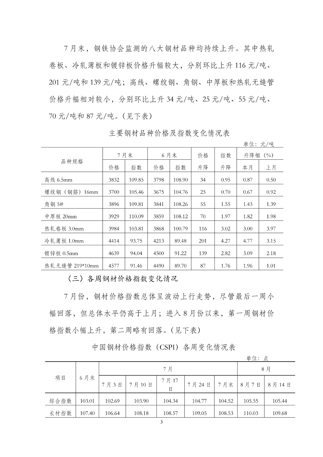 7月份国内市场钢材价格继续小幅上升 - 热点焦点 - 冶金网-首页-钢材 薄板 不銹钢 炉料 生铁 铁矿石 价格 行业分析 出厂价格 市场价格 宏观政策 进出口数据