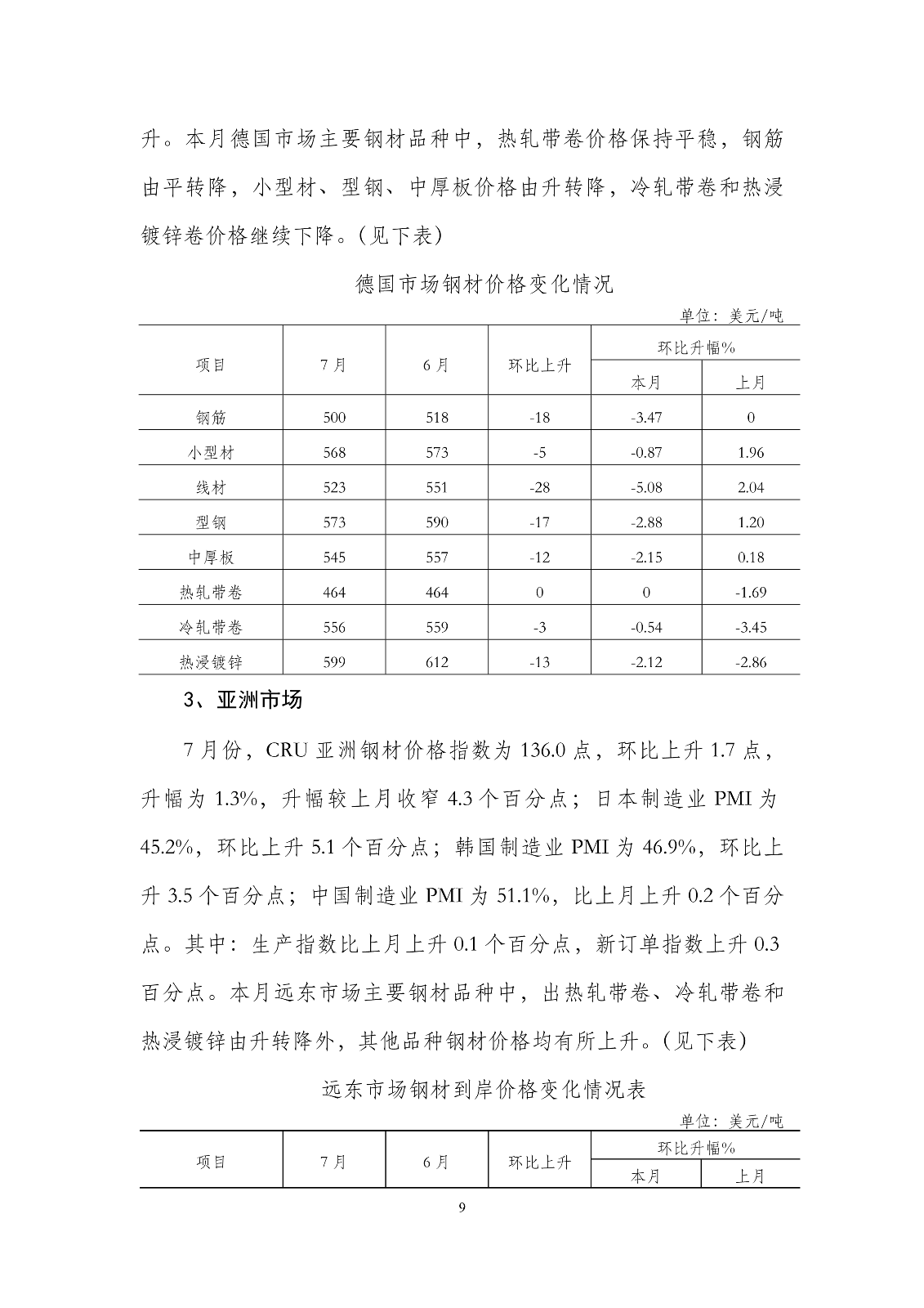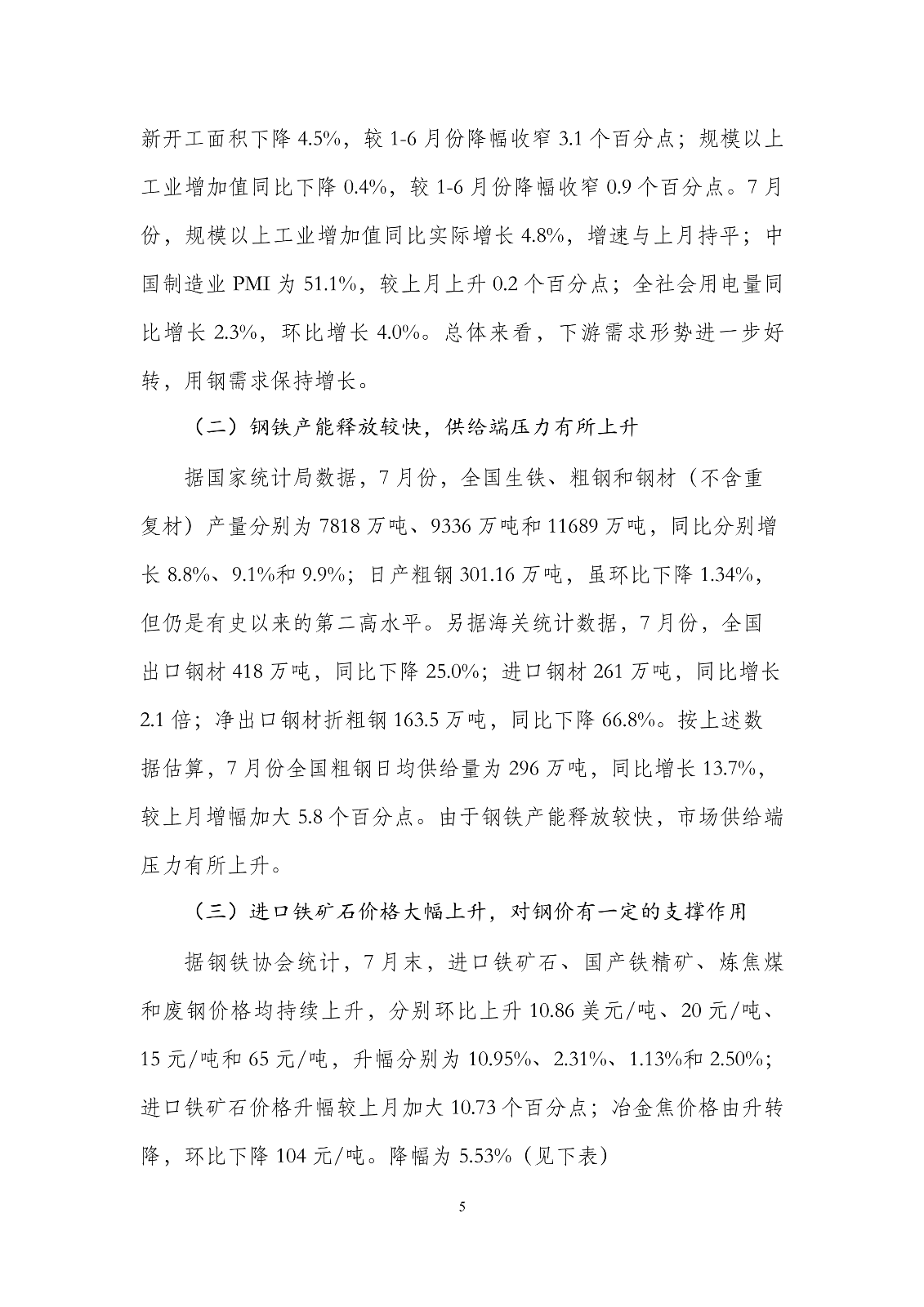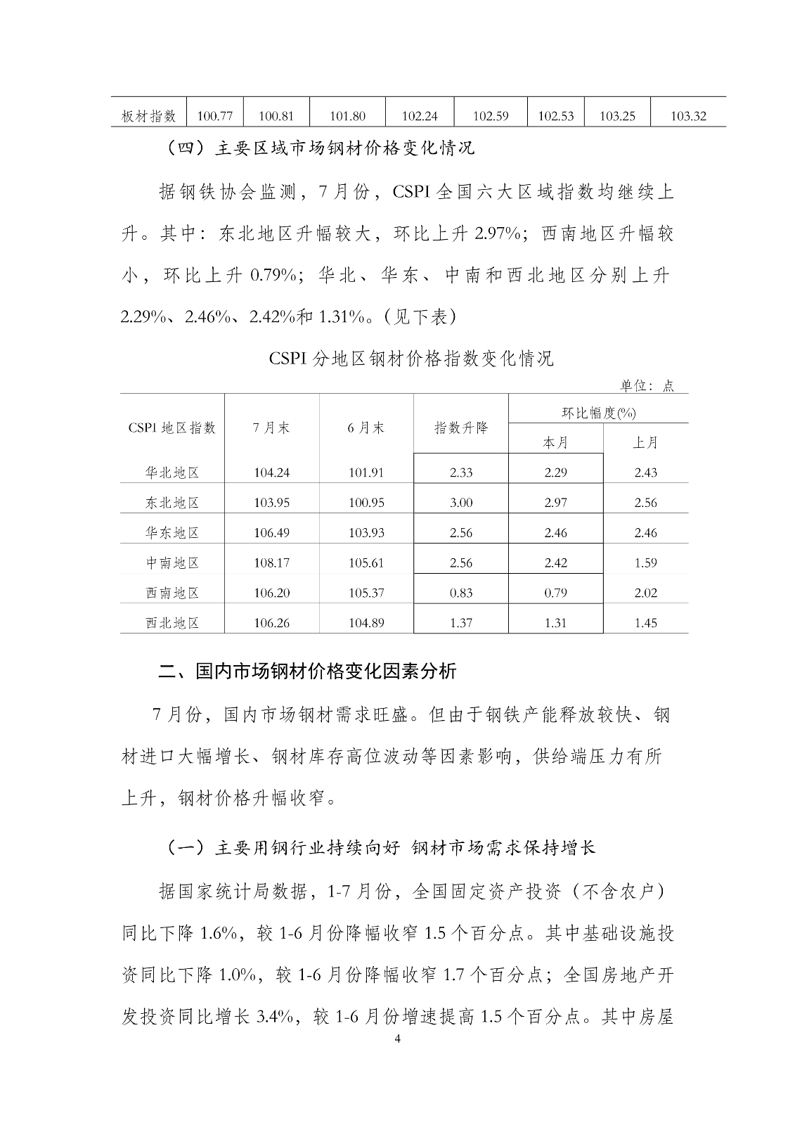7月份国内市场钢材价格继续小幅上升 - 热点焦点 - 冶金网-首页-钢材 薄板 不銹钢 炉料 生铁 铁矿石 价格 行业分析 出厂价格 市场价格 宏观政策 进出口数据