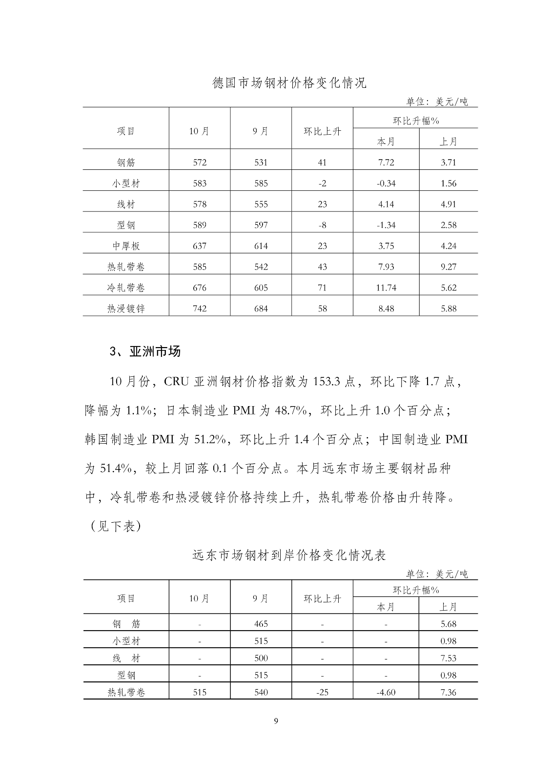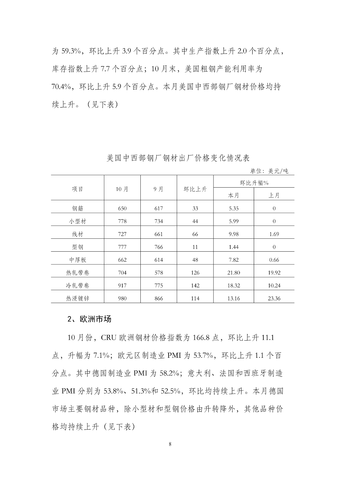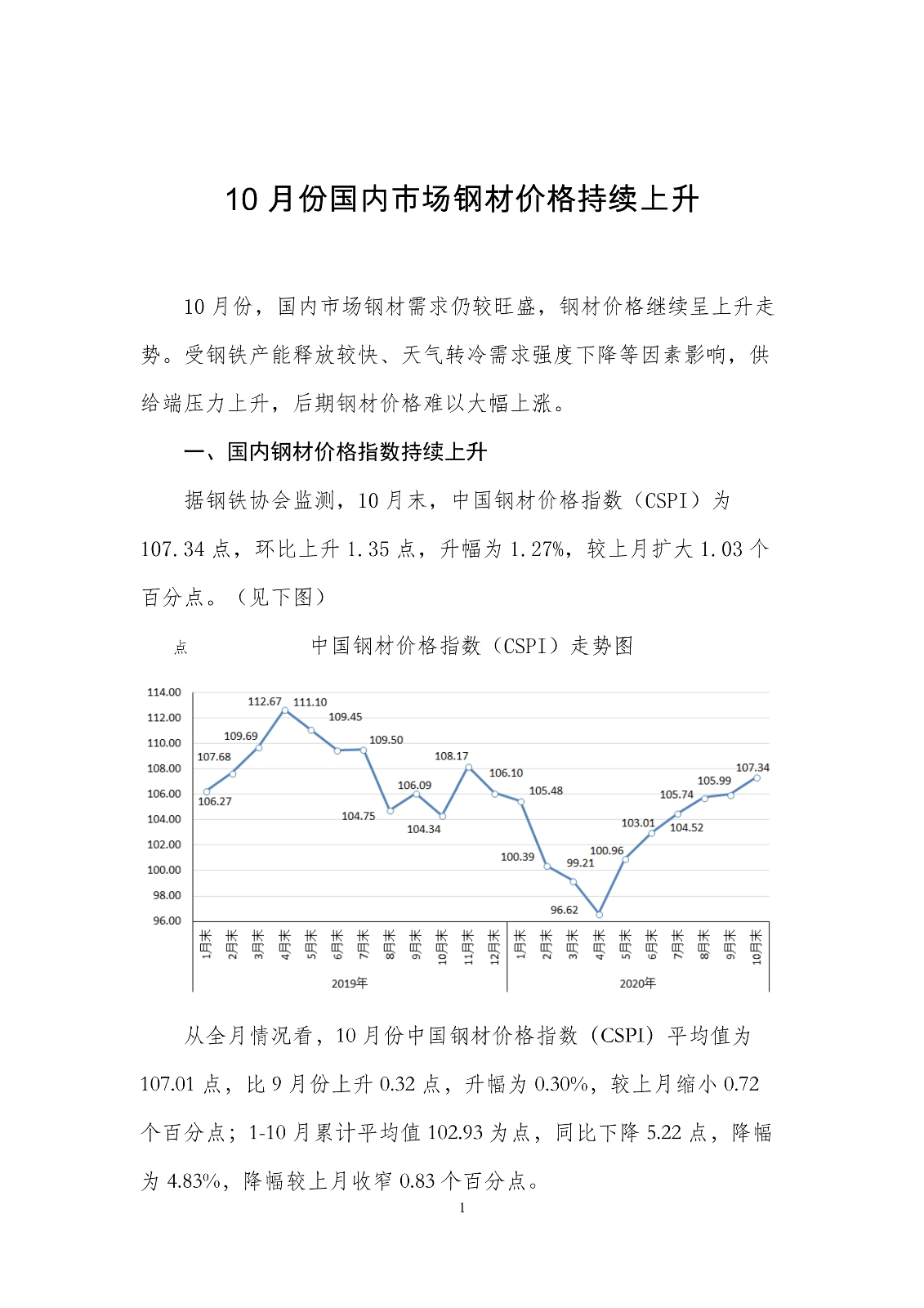 10月份国内市场钢材价格持续上升 - 热点焦点 - 冶金网-首页-钢材 薄板 不銹钢 炉料 生铁 铁矿石 价格 行业分析 出厂价格 市场价格 宏观政策 进出口数据