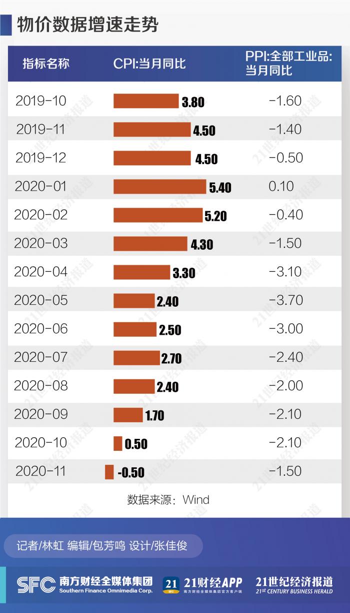 12月9日,国家统计局发布CPI、PPI数据显示,2020年11月份,CPI同比下降0.5%,环比下降0.6%;PPI同比下降1.5%,环比上涨0.5%。