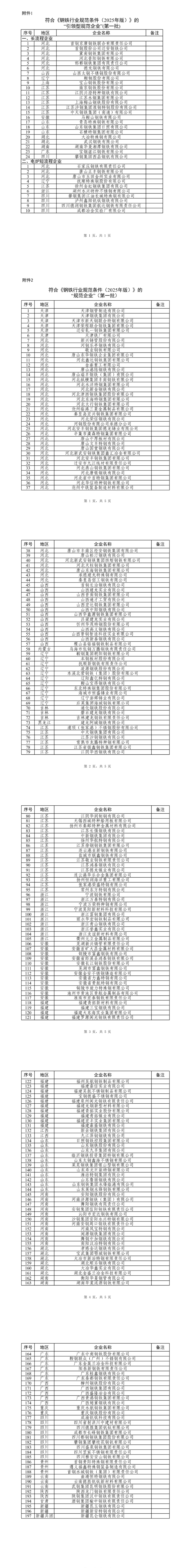 附件:1.符合《钢铁行业规范条件(2025年版)》的“引领型规范企业”(第一批)